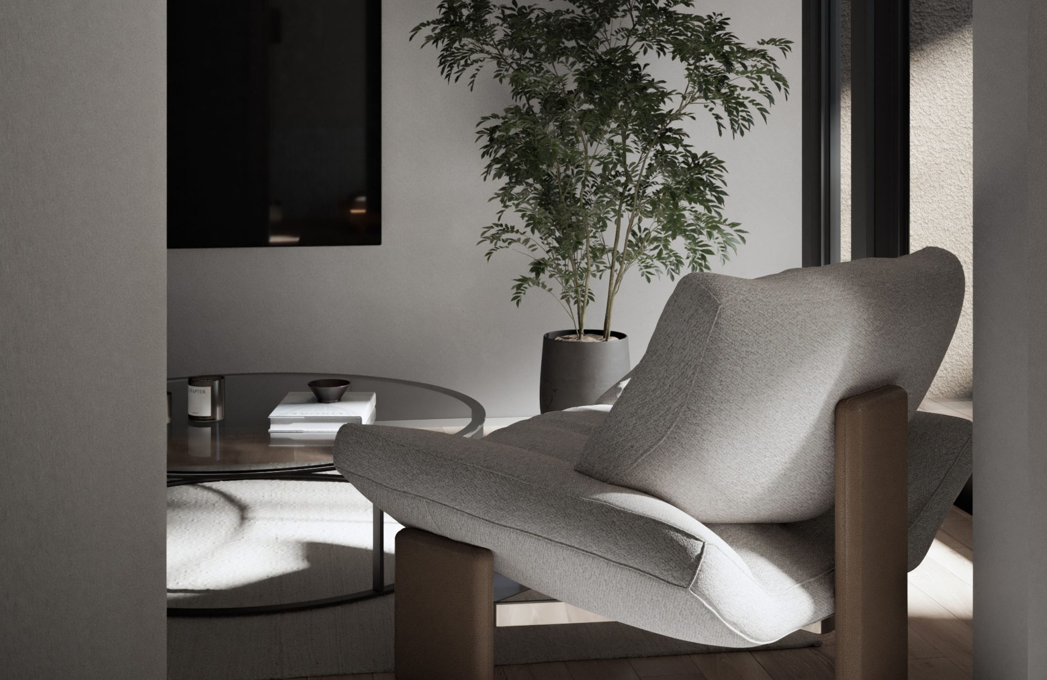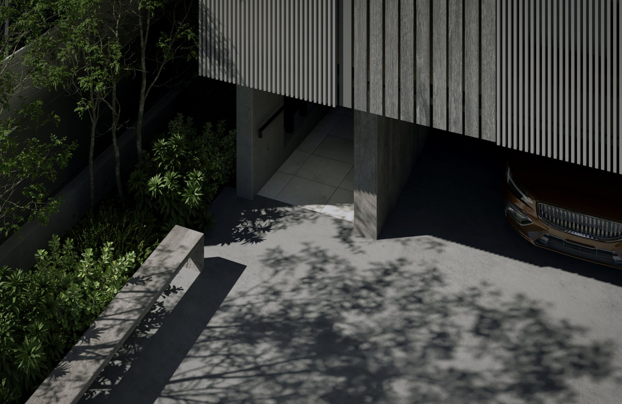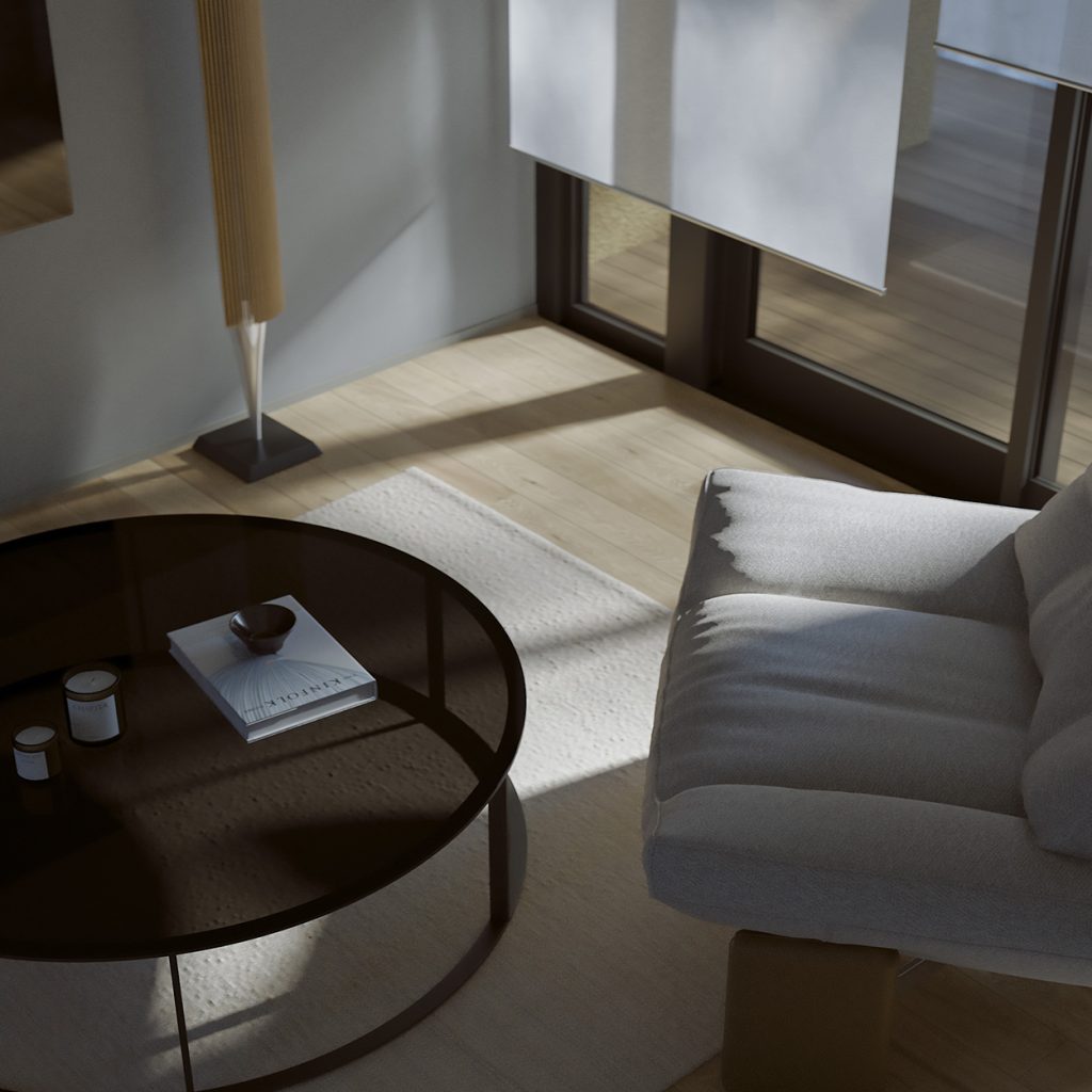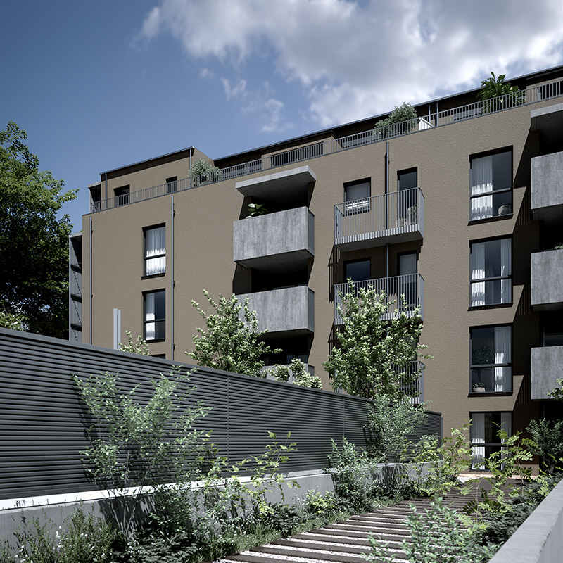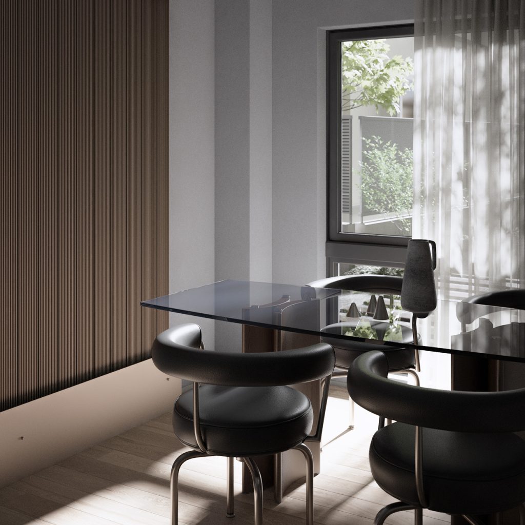 直方体のシンプルな建物を、3つの住戸ブロックに分けて配置。 それぞれの住戸が自然と接続されるようにデザインされ、光、風、緑を受け入れる。 機能と詩情が共存する、静かな構造の対話。