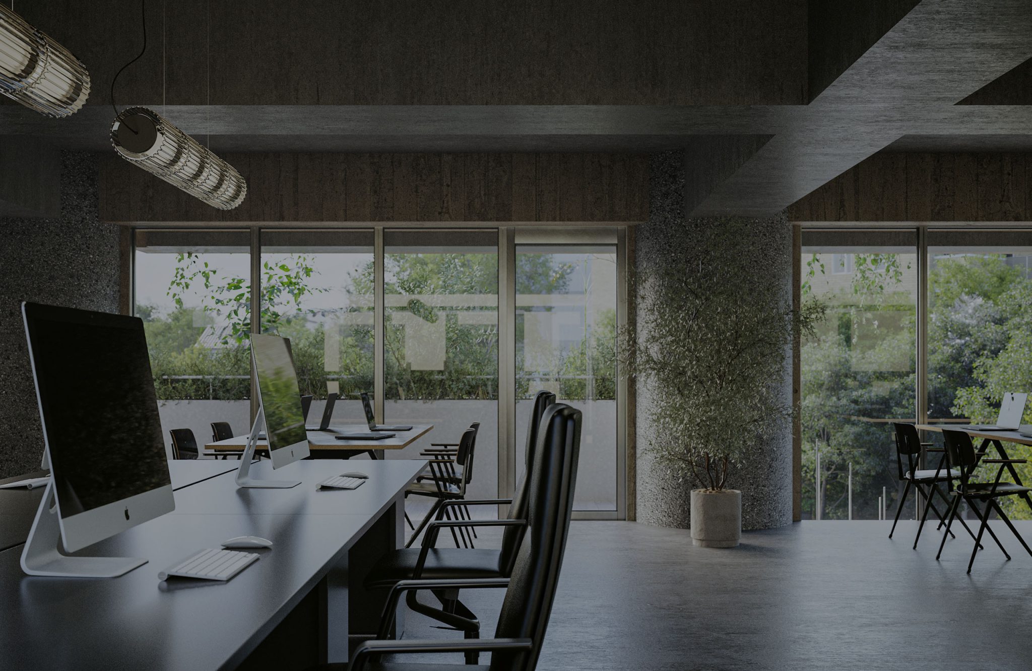 緑が放つ空気を取り込み、気配まで纏うテナント空間。 ひと息で、都市の緊張がほどけていく。 窓の向こうにあるのは景色ではなく、日常の感度を静かに上げる緑のレイヤーです。