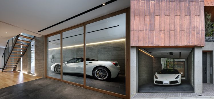 1階のガレージスペースは、ゲストリビングとシームレスにつながります。エンジン音とともに目覚める休日。プライベートなショールームのような空間で、車はインテリアの一部となり、時には主役となります。