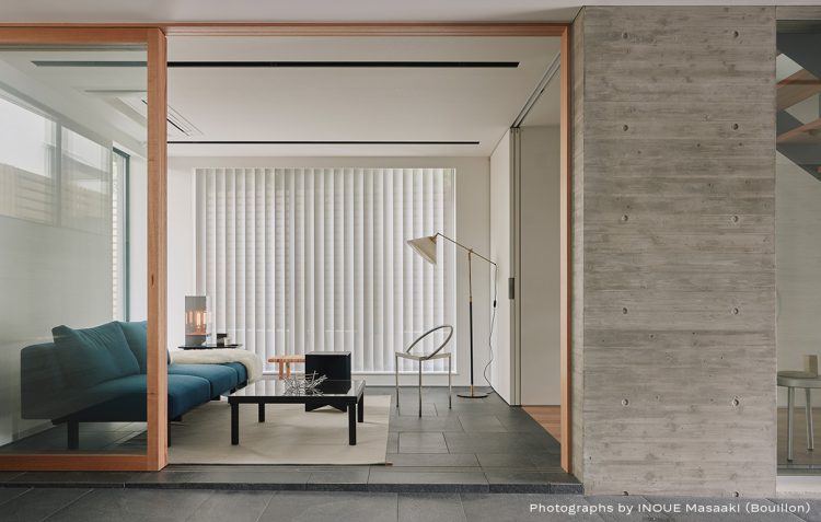 外壁に選ばれた銅板は、日本の寺社建築にも用いられる伝統的な素材。時を経るごとに銅板の色は変化し、10年後には深い味わいを、20年後にはさらなる風格をまといます。杉板の木目模様を転写したコンクリートの打ち放し壁面も、小川氏のこだわり。本物の木ではないのに、なぜか温もりを感じる。この矛盾が面白いところです。