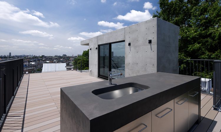 屋上テラスには、アウトドアキッチンが備え付けられており、料理を階下から運ぶ必要もありません。遠くに高層ビル群を眺めながら、できたてのグリル料理を楽しむ。都心のペントハウスでもなかなか実現できない贅沢です。
