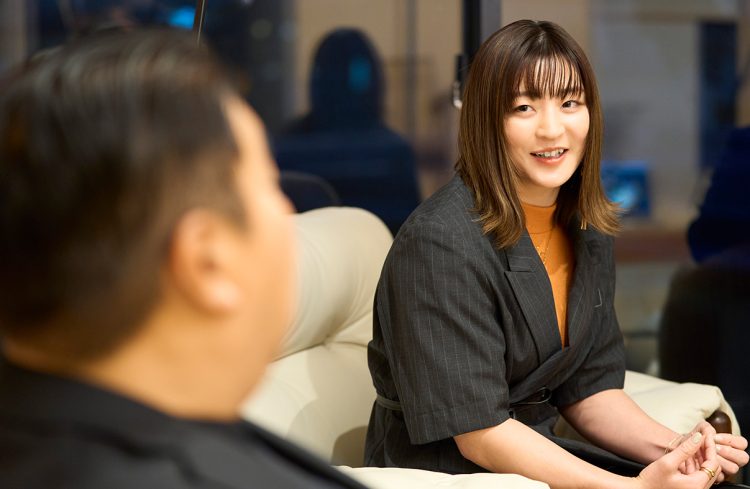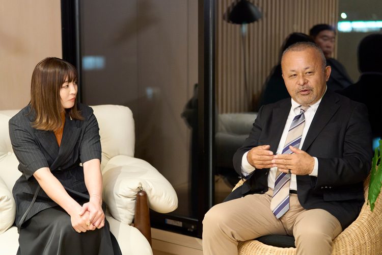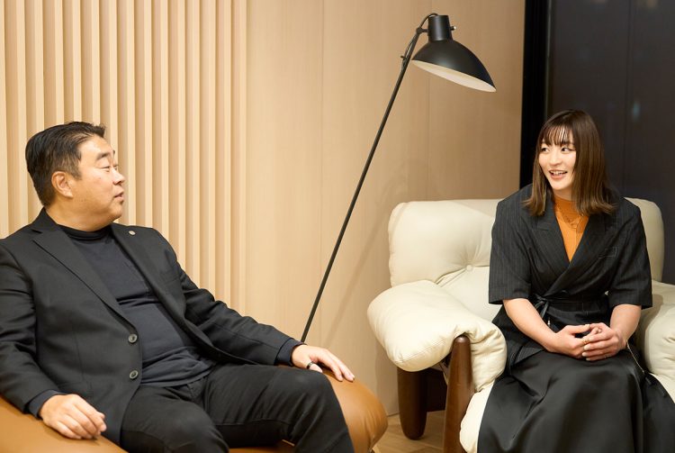 世田谷区用賀。閑静な住宅街の一角に佇む「THE GRANDUO YOGA」で、角田さんと、この物件を手がけた、当社フェイスネットワーク代表取締役社長 蜂谷二郎との対談が始まった。