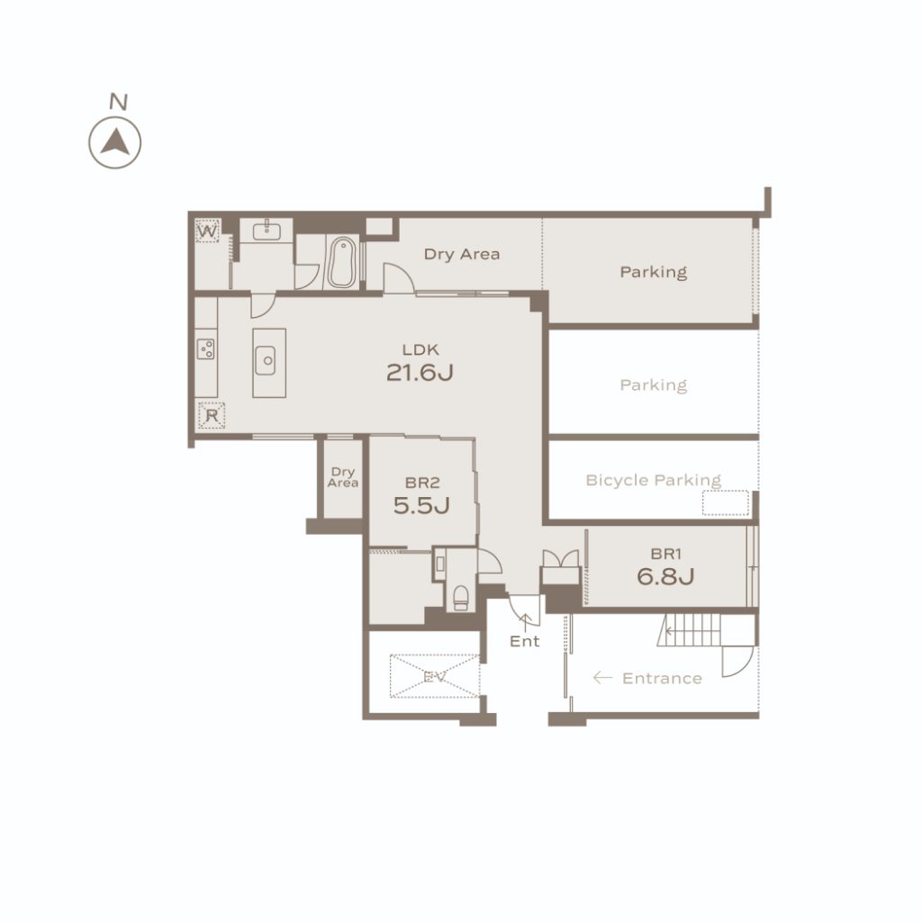 - 専用屋内駐車場1台あり、住居兼事務所不可、解約予告2ヶ月前